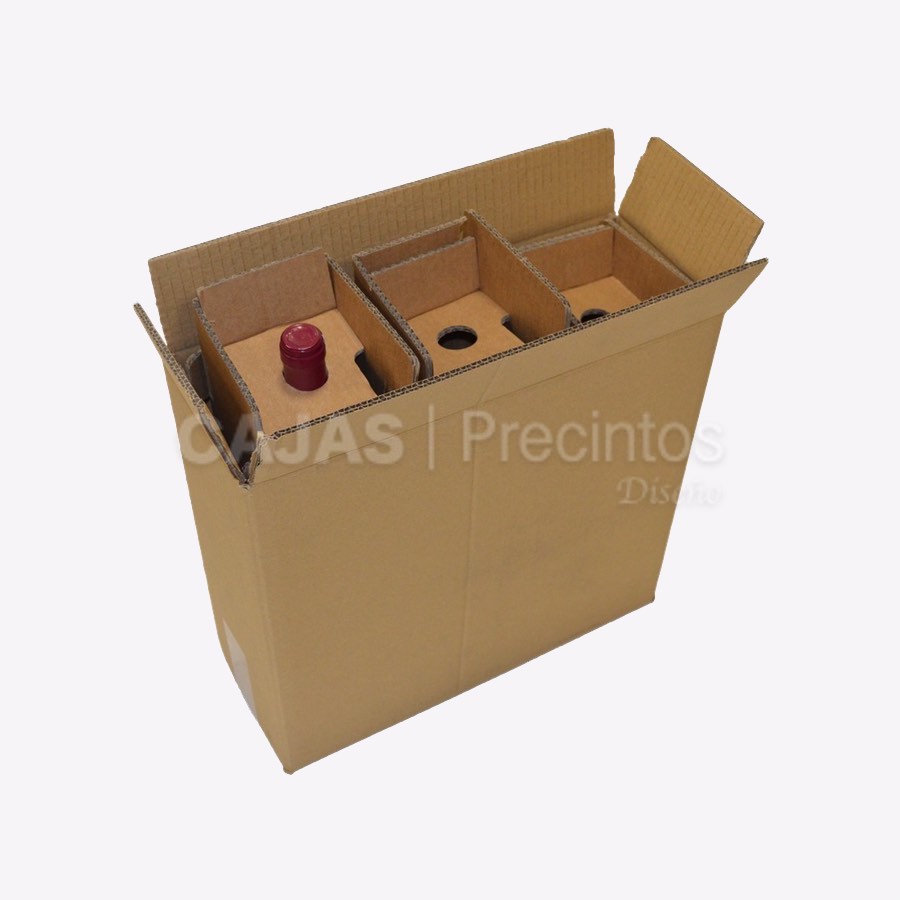 Caja de cartón especial para envíos y protectores especiales para el envío de 3 botellas de vino de 75 cl. Canal DOBLE 8mm