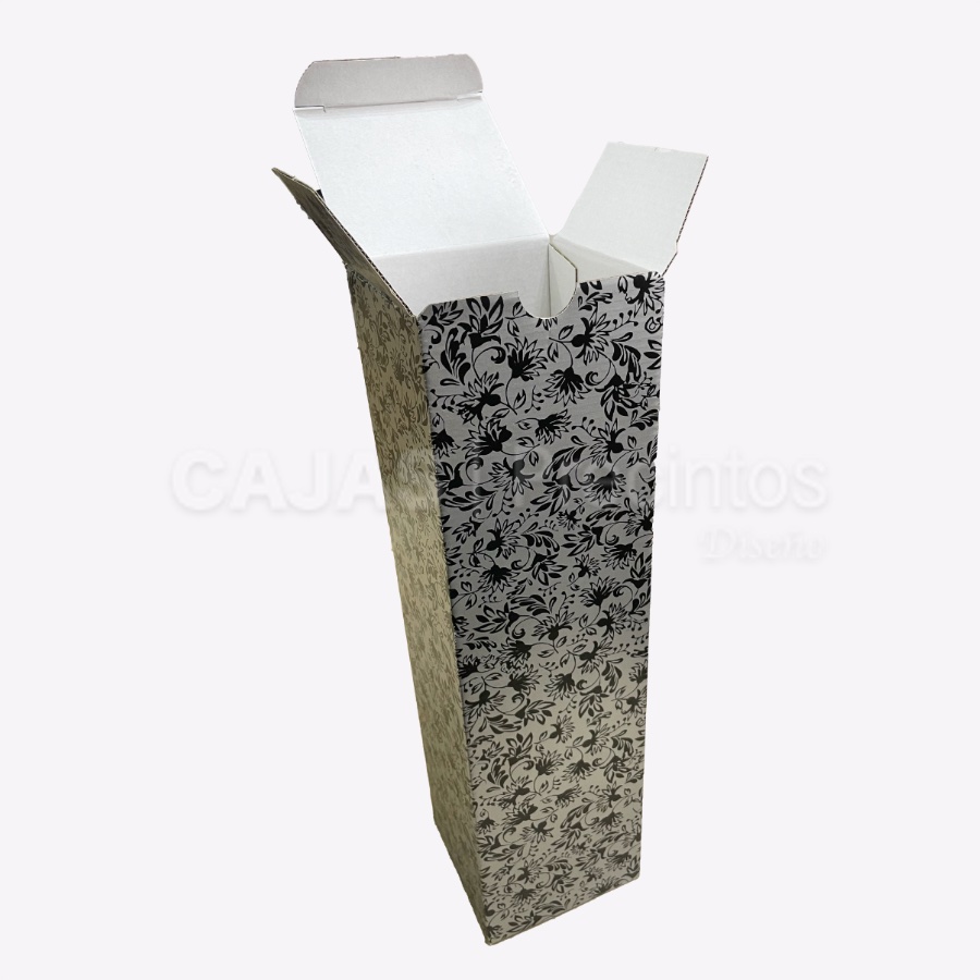 Caja de cartón especial para botellas magnum. Impresión contracolada, cierre inferior semi automático y superior por solapa.
