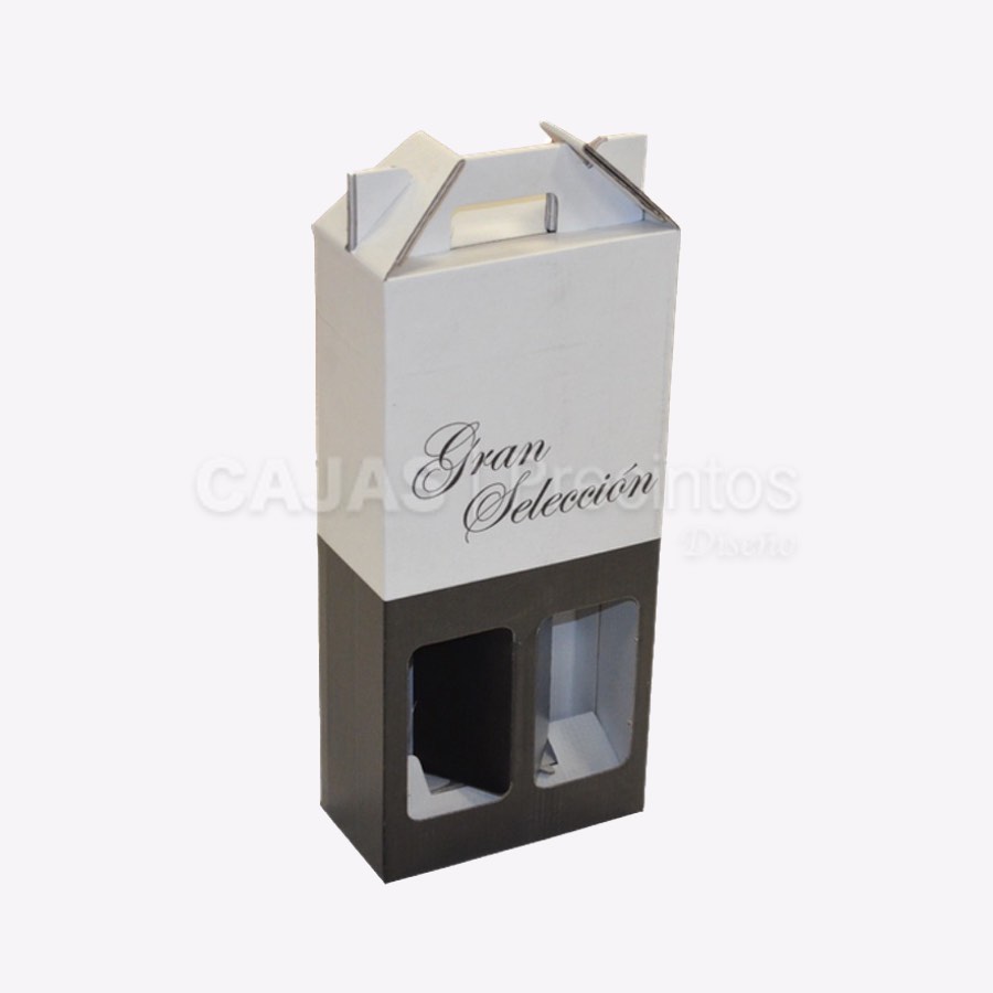 Estuche de cartón de alta calidad para 2 botellas de vino de 75 cl., canal SENCILLO 3mm